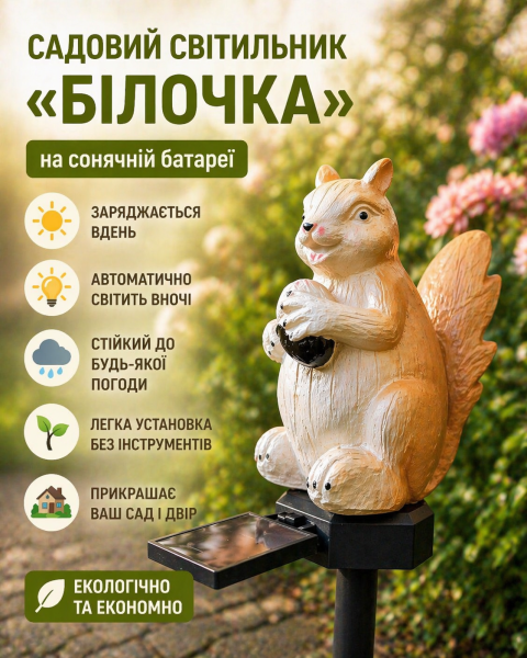 Садовий світильник на сонячній батареї / Світлодіодний вуличний декоративний світильник Білка