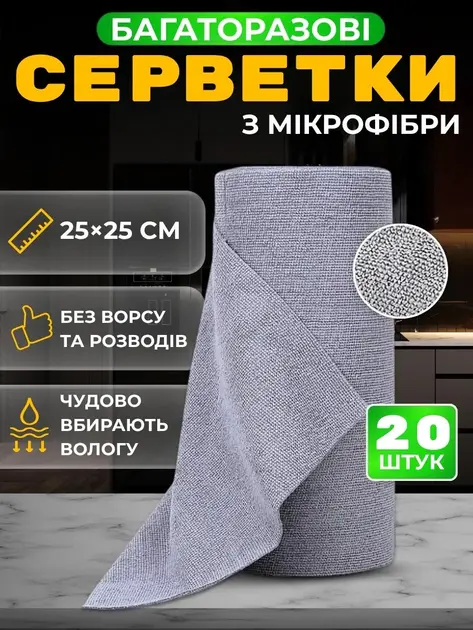 Багаторазові салфетки з мікрофібри в рулоні - ідеальна чистота без розлучень