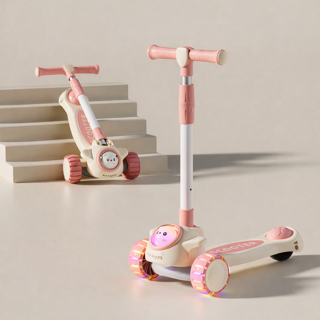 Самокат дитячий 5 в 1 музичний із захисним бортиком, бампером та з батьківською ручкою Рожевий