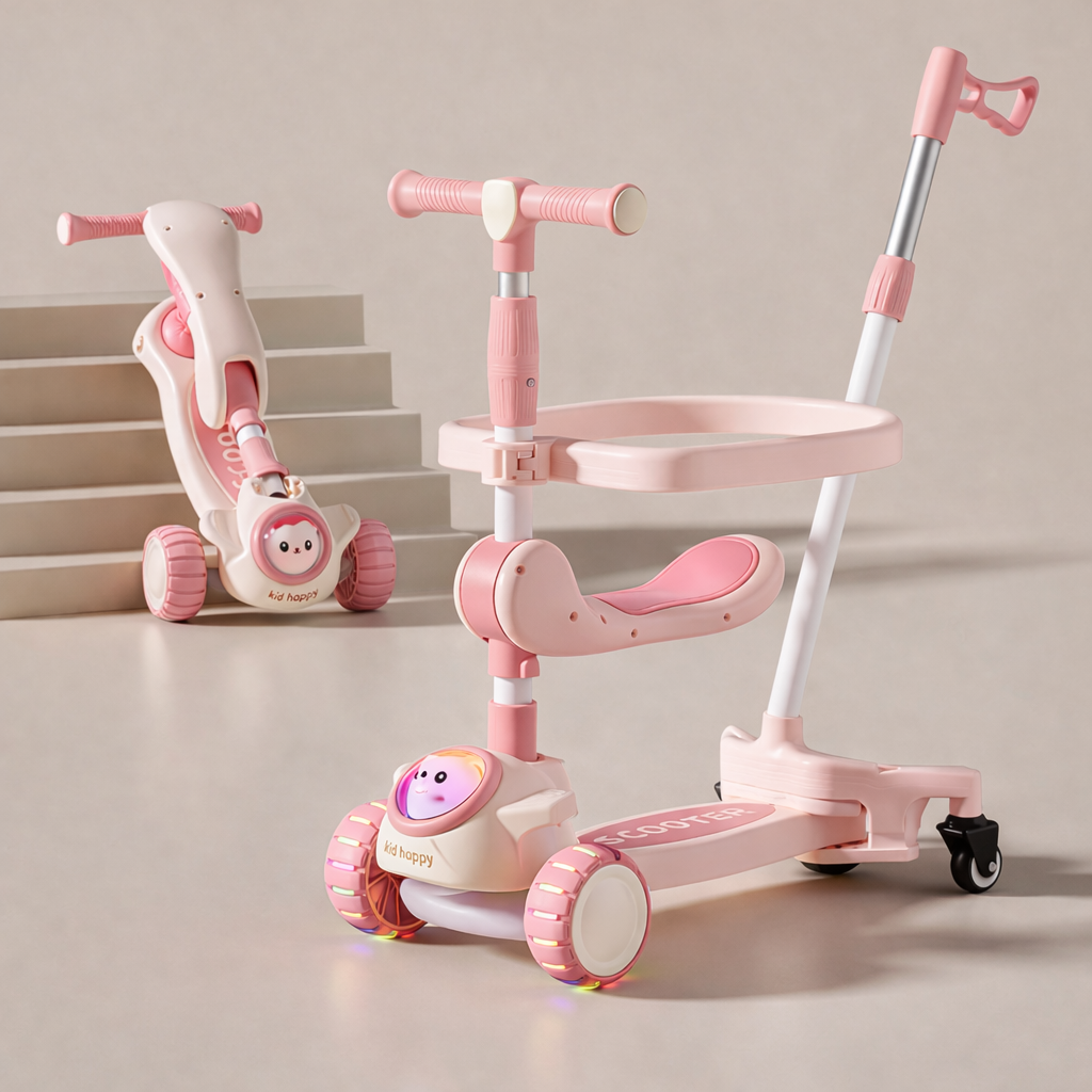 Дитячий самокат 5 в 1 з сидінням, бортиком та батьківською ручкою