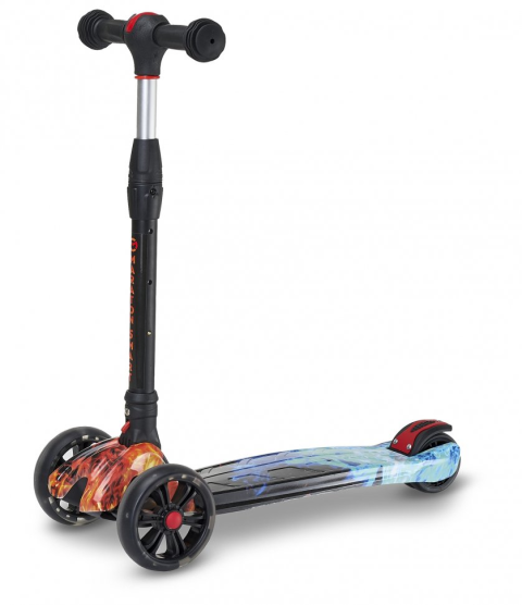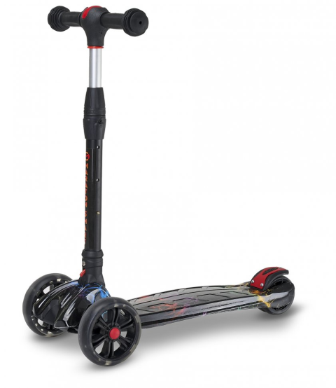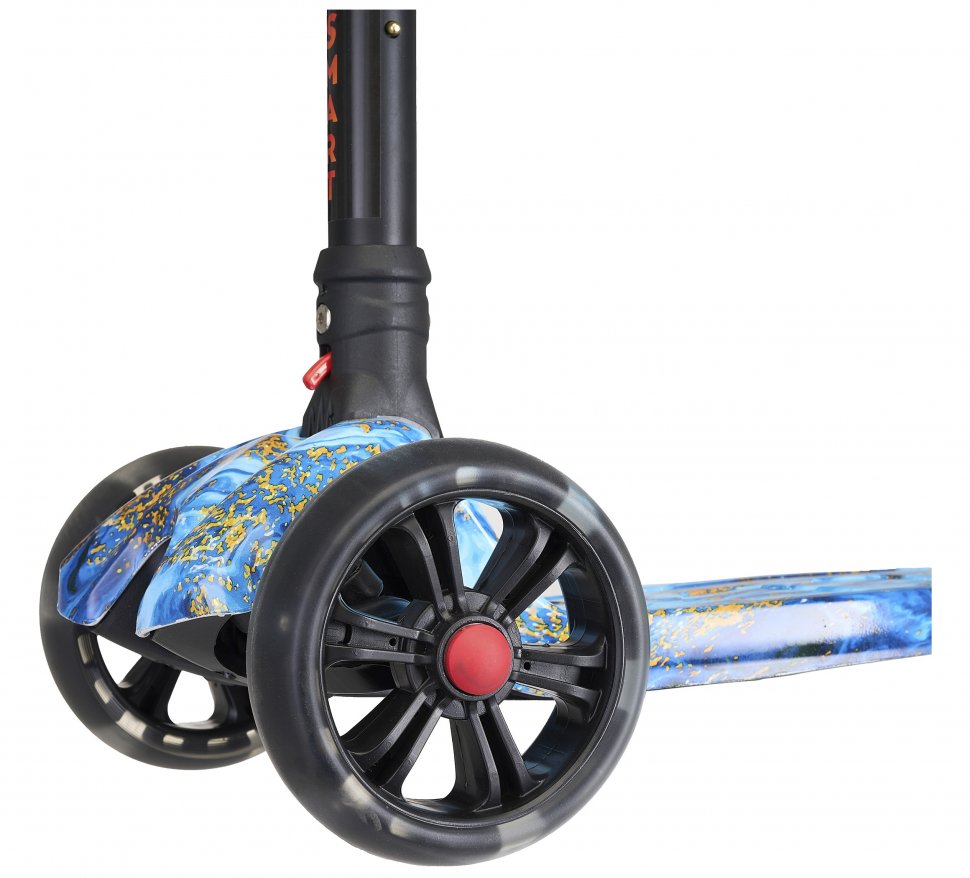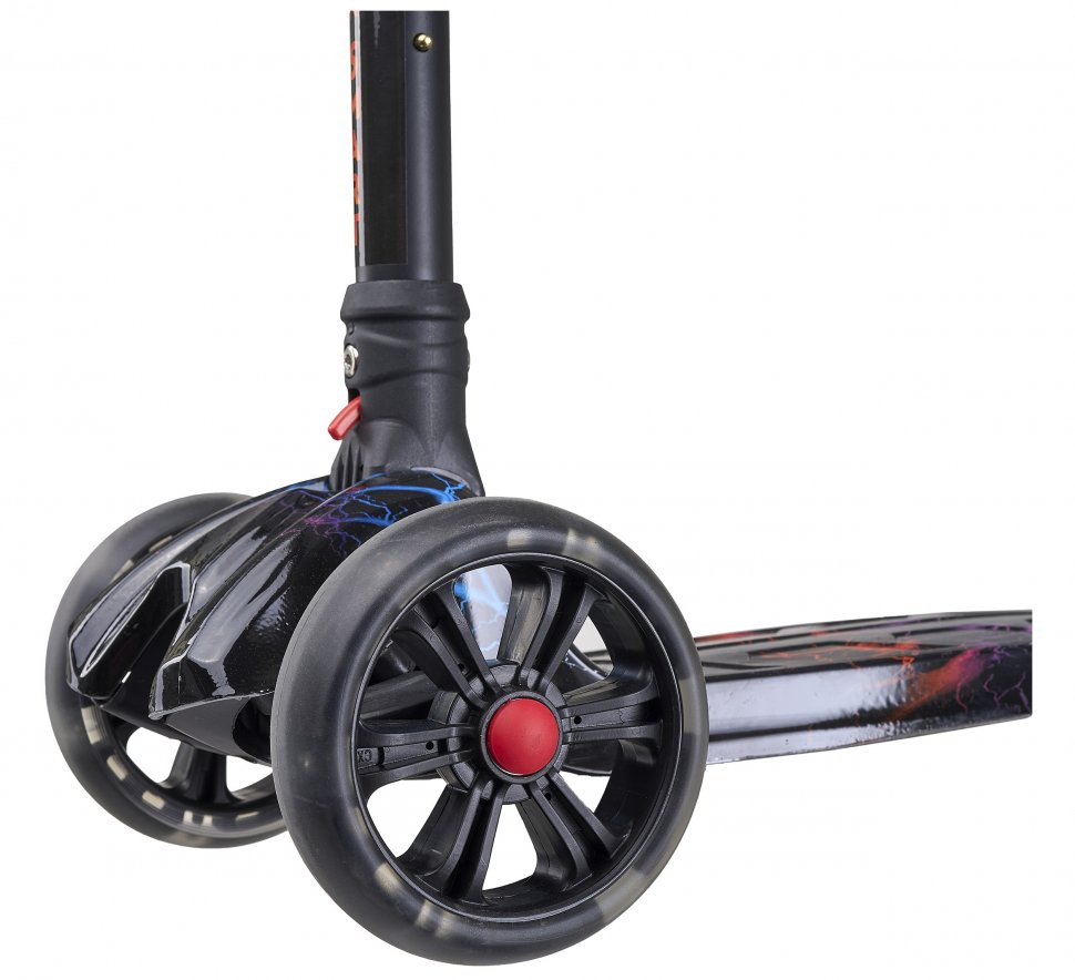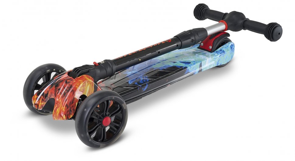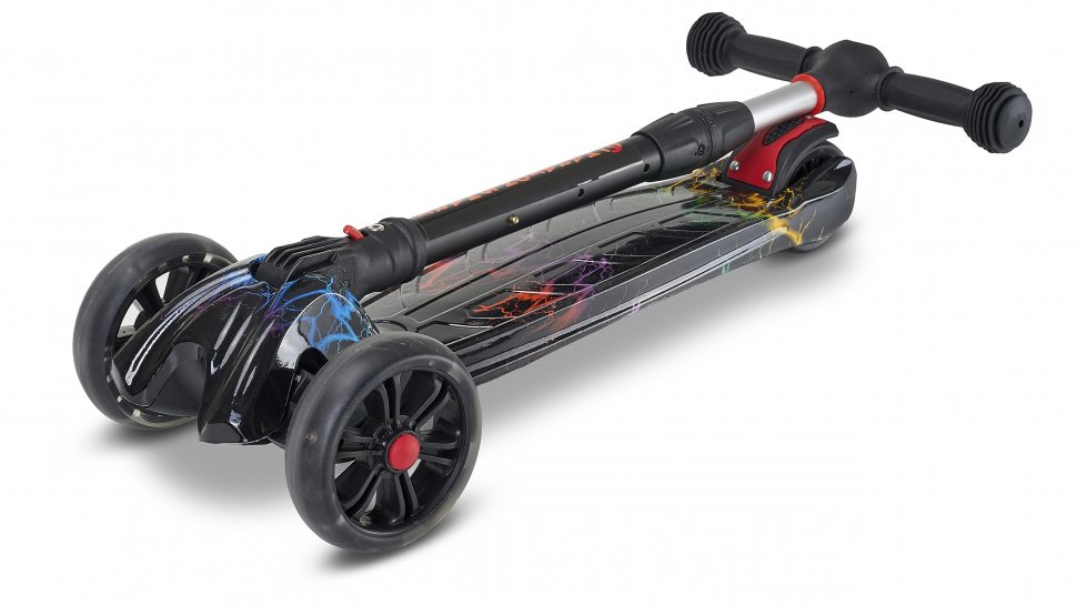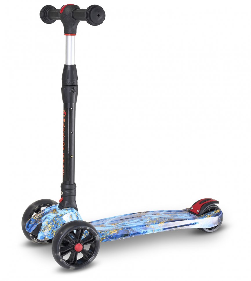 Алюмінієве кермо Легка система складання Нейлонова платформа підвищеної міцності Регульована висота керма до 78 см Колеса PU, що світяться, передні 130 мм, заднє 90 мм Високоточний підшипник Використання за віком: 3+ Вантажопідйомність: до 65 кг
