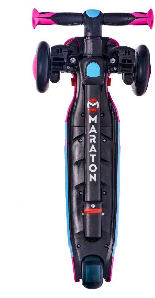 Самокат-трансформер Maraton Flex – це водночас і самокат та беговел. Усього за кілька секунд, натисканням на кнопку, беговел трансформується в самокат і назад. Розрахований для дітей віком від 1 до 6 років та вагою до 50 кг.