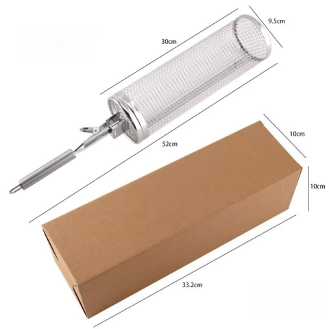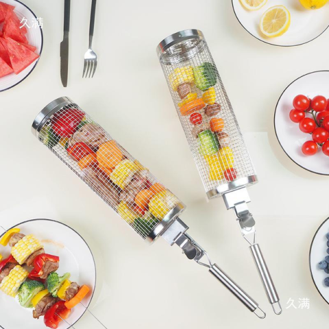 Продукти залишаються на місці, забезпечуючи ідеальне приготування кожного шматочка. Крім того, грати для гриля мають циліндричну форму, що дозволяє легко перевертати її на грилі за допомогою спеціальної ручки, яка йде в наборі. Завдяки круглій формі решітки для барбекю Ви зможете чудово контролювати процес смаження та досягти бажаного ступеня золотистості та підсмаженості шашлику та грилю.