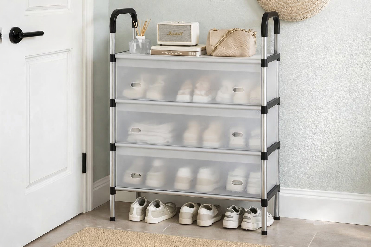 ✔ 3 місткі полиці — зручно розміститься взуття всієї родини.