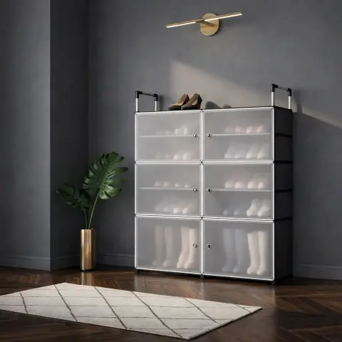 Ця шафа – ідеальне рішення для наведення порядку та зберігання вашого взуття – закритий стелаж. Ця шафа не тільки функціональна, але і має сучасний стильний дизайн, який легко впишеться в будь-який інтер'єр, привносячи до нього акуратність та організованість.