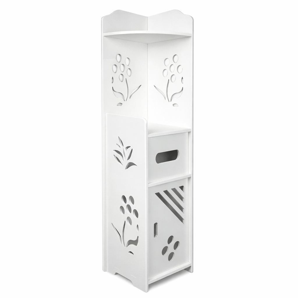 Уявіть ідеальне рішення для зберігання у ванній кімнаті! Забезпечте порядок та комфорт з цією стильною шафою-стелажем Flowers, яка зробить вашу кімнату зручнішою та сучаснішою.