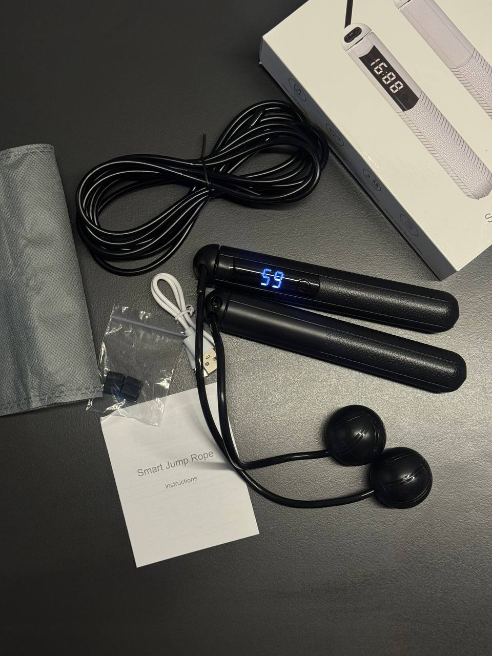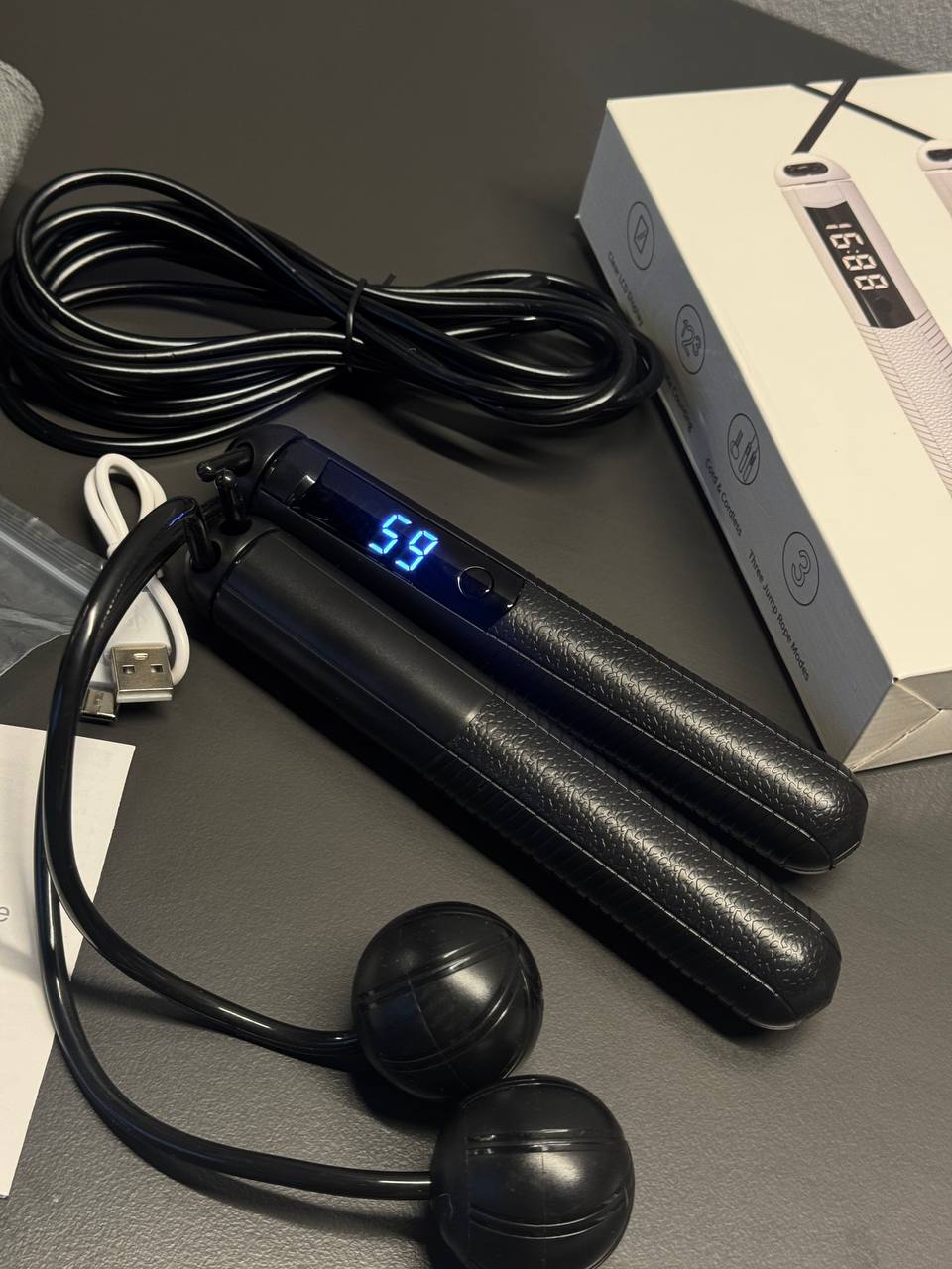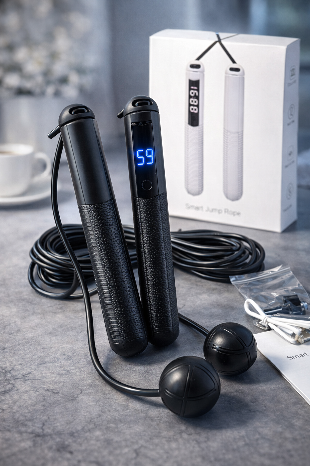 На відміну від традиційних моделей, бездротова скакалка складається тільки з ручок та обважнених куль на коротких джгутах. Аксесуар захищений від намотування джгута, поверхня ручок та куль виготовлена з матеріалу, стійкого до утворення подряпин та механічних пошкоджень.