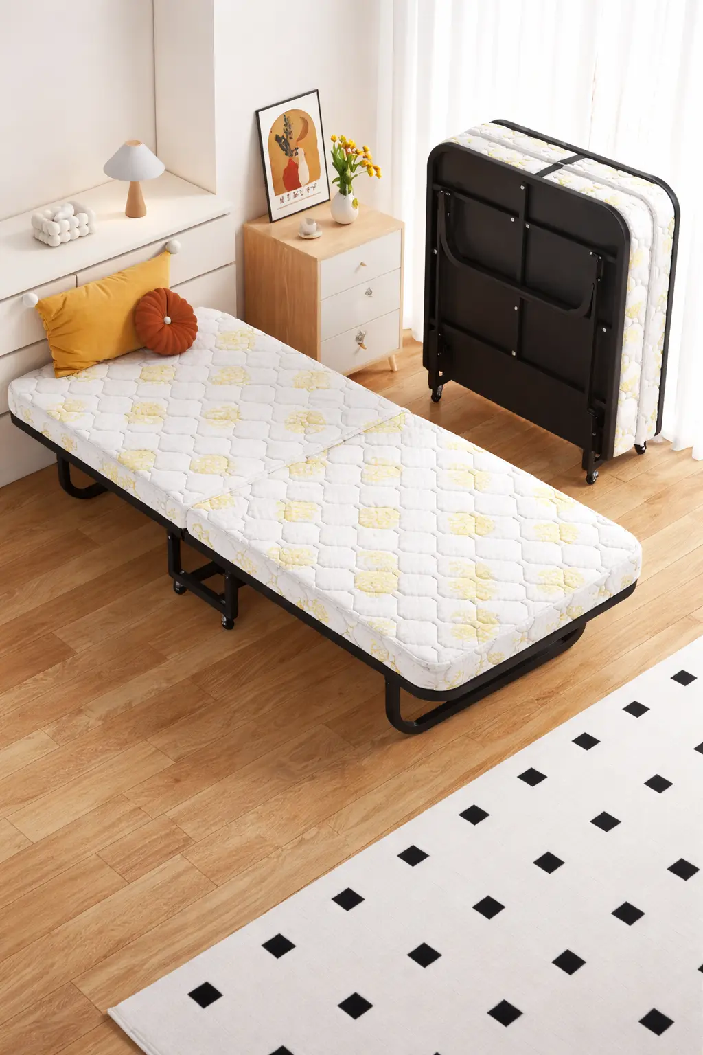 ліжко підходить для різних сценаріїв, наприклад, для розміщення гостей з ночівлею, як зручне складане ліжко в орендованих будинках або для швидкого відпочинку під час нічних змін або обідніх перерв.