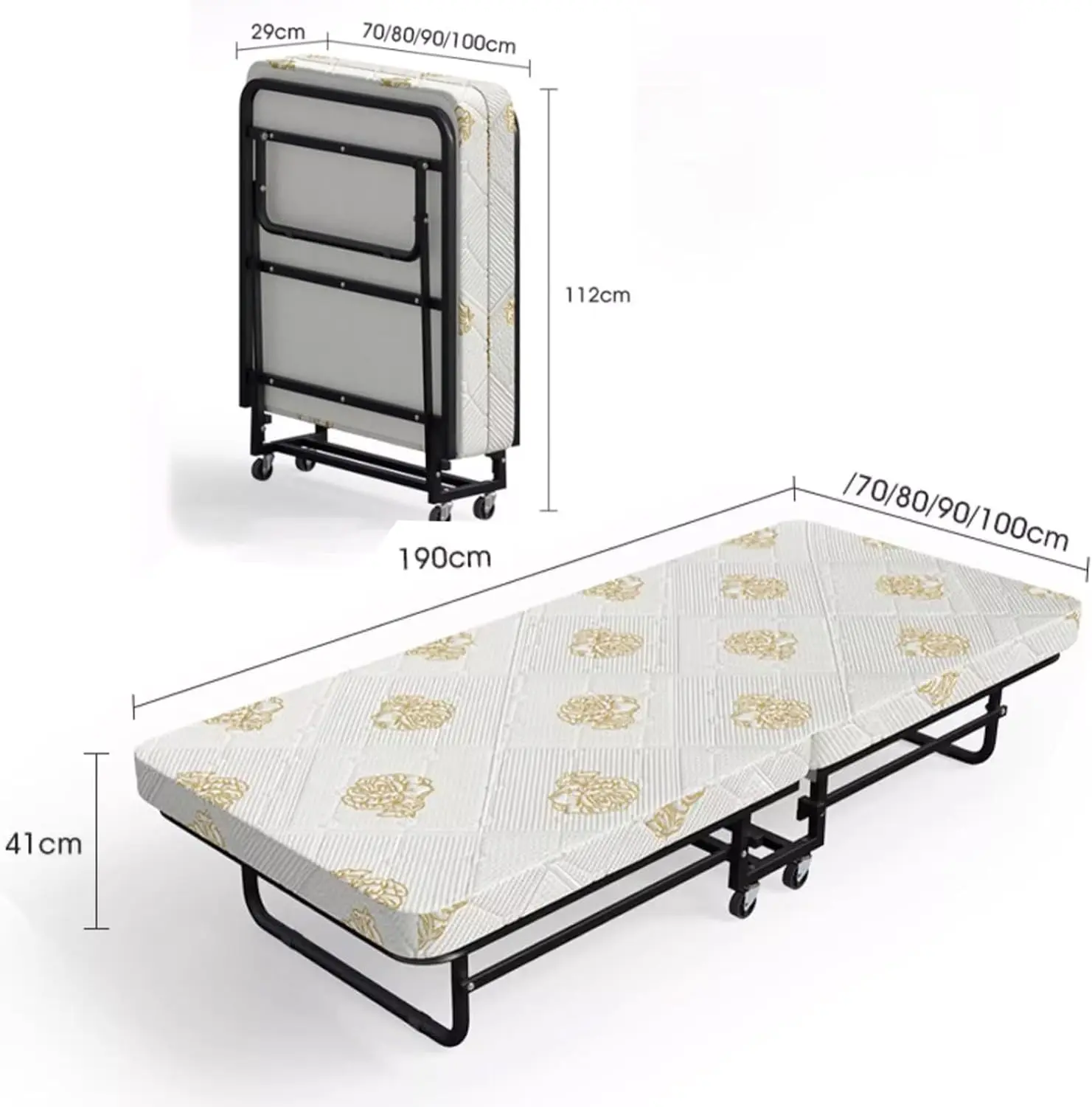 Портативне складне ліжко на колесах 190x70x41cm