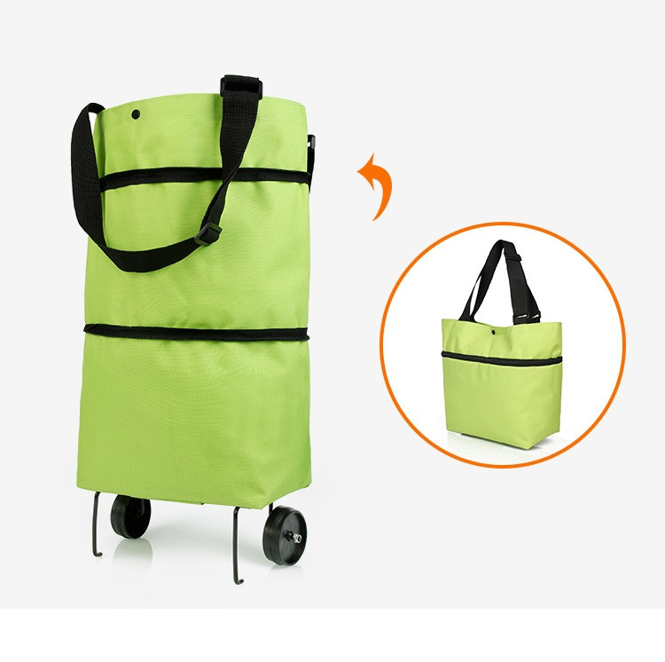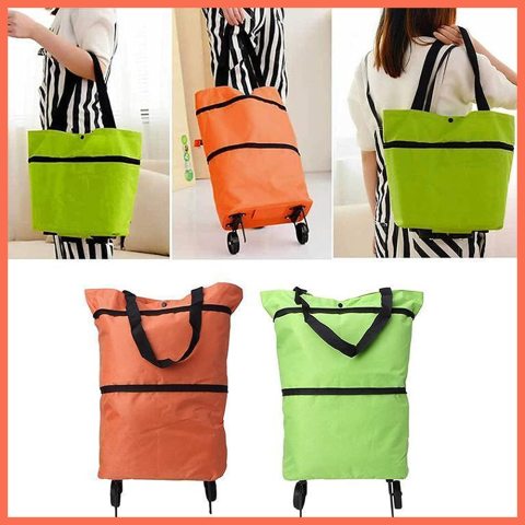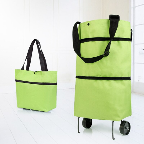 У складеному вигляді компактна, оснащена зручною ручкою-петлею для перенесення та підвішування. Модель легко трансформується - за кілька секунд розкладається в сумку господарську на колесах. Вирушаючи на прогулянку, візьміть аксесуар із собою, він поміститься у ваш рюкзак. А повертаючись додому, розкладіть одним рухом - і отримайте містку сумку для покупок.