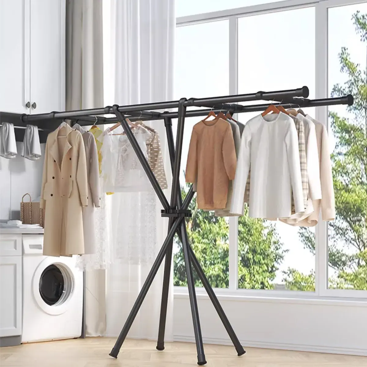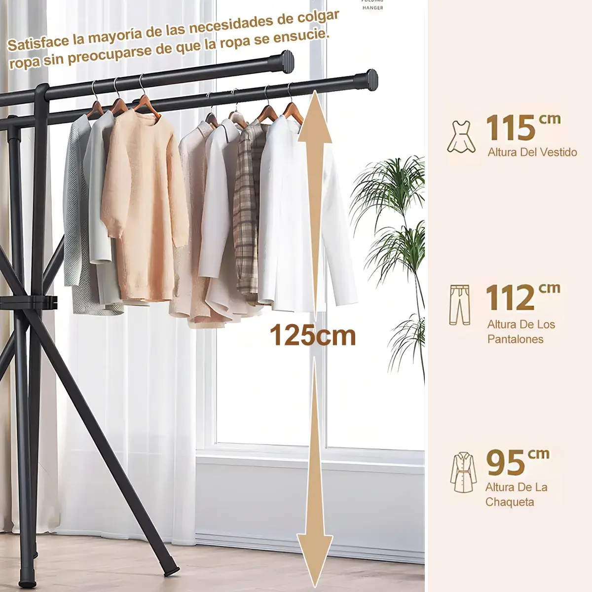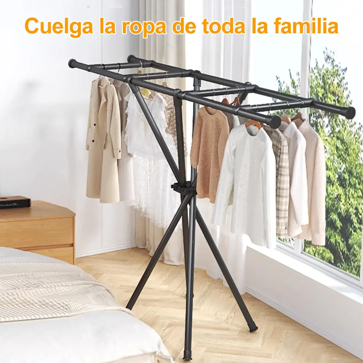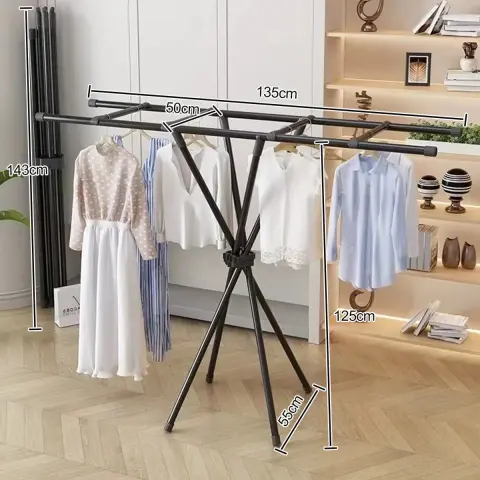 Завдяки своїй міцній конструкції, вішалка здатна витримувати значну вагу, а складний механізм дозволяє легко прибирати її, коли вона не потрібна, заощаджуючи місце у вашій квартирі. Використовуйте її в спальні, гардеробі, на балконі або біля ванної кімнати - вона скрізь буде корисною! Легке складання та розбирання роблять її максимально зручною у використанні. З нашою складною вішалкою ви забудете про заворушення та насолодитеся комфортом та організованістю у своєму будинку.