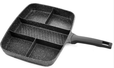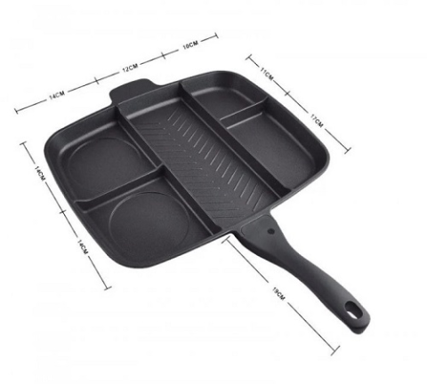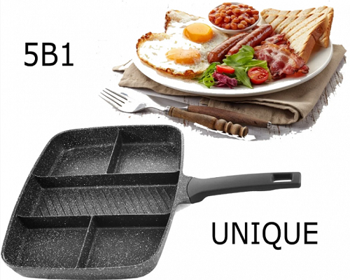 Сковорода 5-1 UNIQUE UN-4021 розділена на 5 відсіків для одночасного приготування різних продуктів.