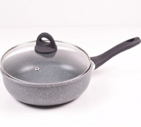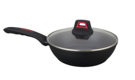 Тіло сковороди виготовлено із кованого алюмінію з високою теплопровідністю + 3 шарове покриття.