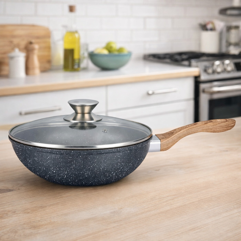 Сковорода WOK Benson з мармуровим антипригарним покриттям та з кришкою 30 x 8 см (BN-490)
