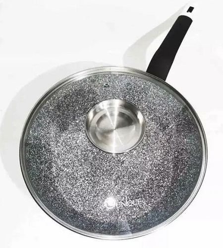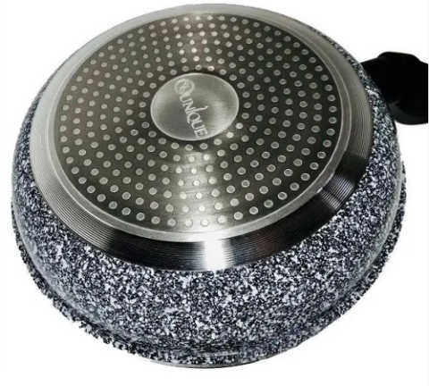 Антипригарна сковорода виготовлена з алюмінію із покриттям із гранітної крихти. Багатошарове гранітне покриття дозволяє сковороді прослужити довго і бути зносостійкою. Крім того, гранітне покриття на мінеральній основі є абсолютно безпечним, а приготовані страви виходять на такій сковорідці смачними.
