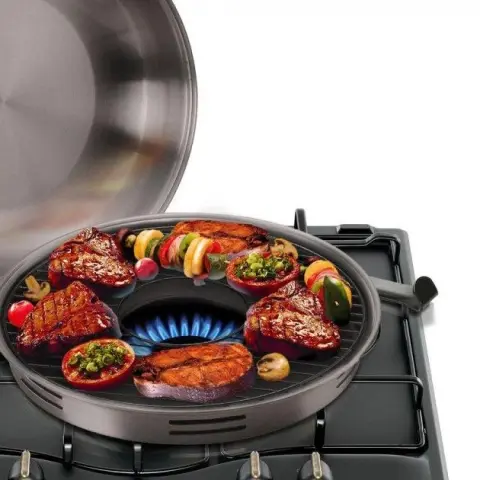 На сковорідці ГРИЛЬ-ГАЗ Benson можна приготувати в домашніх умовах, на газовій плиті, все, що Ви зазвичай готуєте на природі на мангалі. Такі страви як шашлик, запечені овочі, гриби, риба, картопля, засмажені сосиски, різні ковбаски, лаваш, дієтичне м'ясо, котлети, риба тощо можна приготувати за 20-30 хвилин. Користуючись цією сковорідкою, ви заощаджуєте на дровах. Приготування будь-якої страви вп'ятеро економніше, ніж на електричному грилі. Всі страви, приготовані на цій сковорідці набагато корисніше і смачніше, ніж ті, які приготовані на звичайній сковорідці.