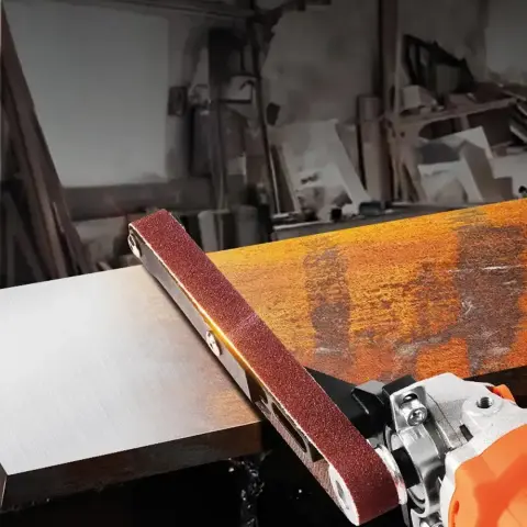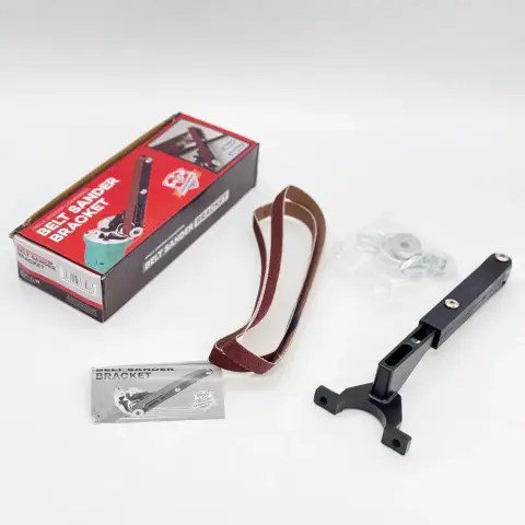 - Надійна конструкція: кріплення насадки завдяки посиленій скобі та міцним гвинтам із сталі. Шліфувальна стрічка стандартного розміру проста в установці.