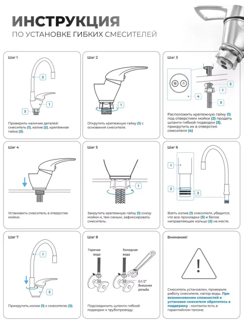 Простота установки на раковину або стільницю із кріпленням на одну гайку.