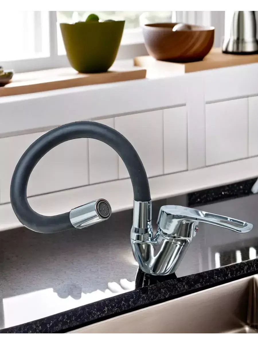 Змішувач для раковини з гнучким краном, що обертається на 360 ° - це універсальне та функціональне рішення для кухні, ванної або раковини. Яскравий сучасний дизайн виробу додасть особливість в інтер'єр.