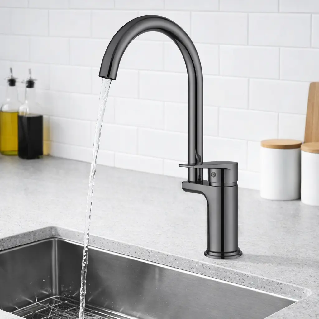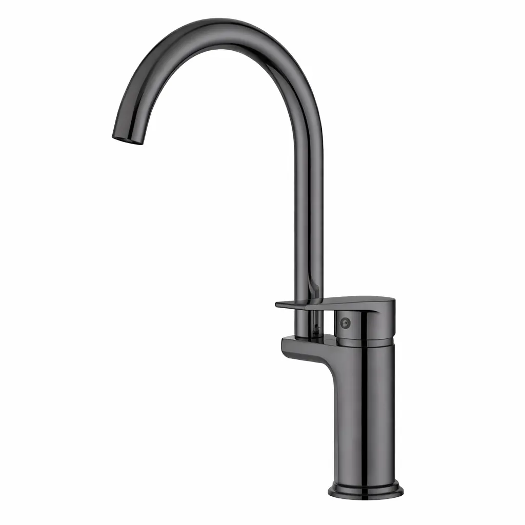 Сучасний кухонний змішувач у чорному кольорі – стильне та практичне рішення для будь-якої кухні. Високий вигнутий вилив забезпечує максимальний комфорт при миття посуду, наповненні каструль і щоденному використанні.