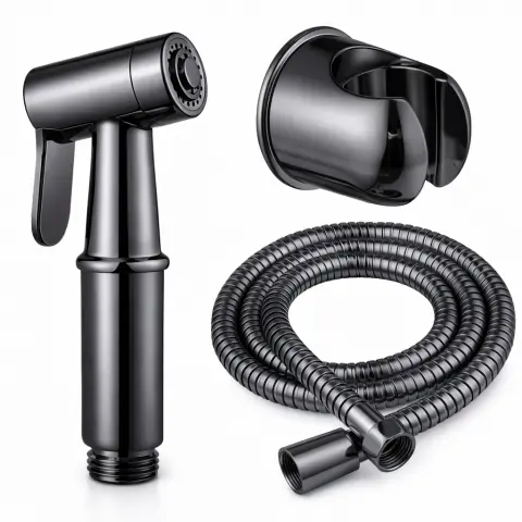 Практичний набір гігієнічного душу - зручне рішення для туалету та ванної кімнати. Ергономічна лійка з курком забезпечує точний напір води, а гнучкий металевий шланг гарантує довговічність та комфорт у використанні.