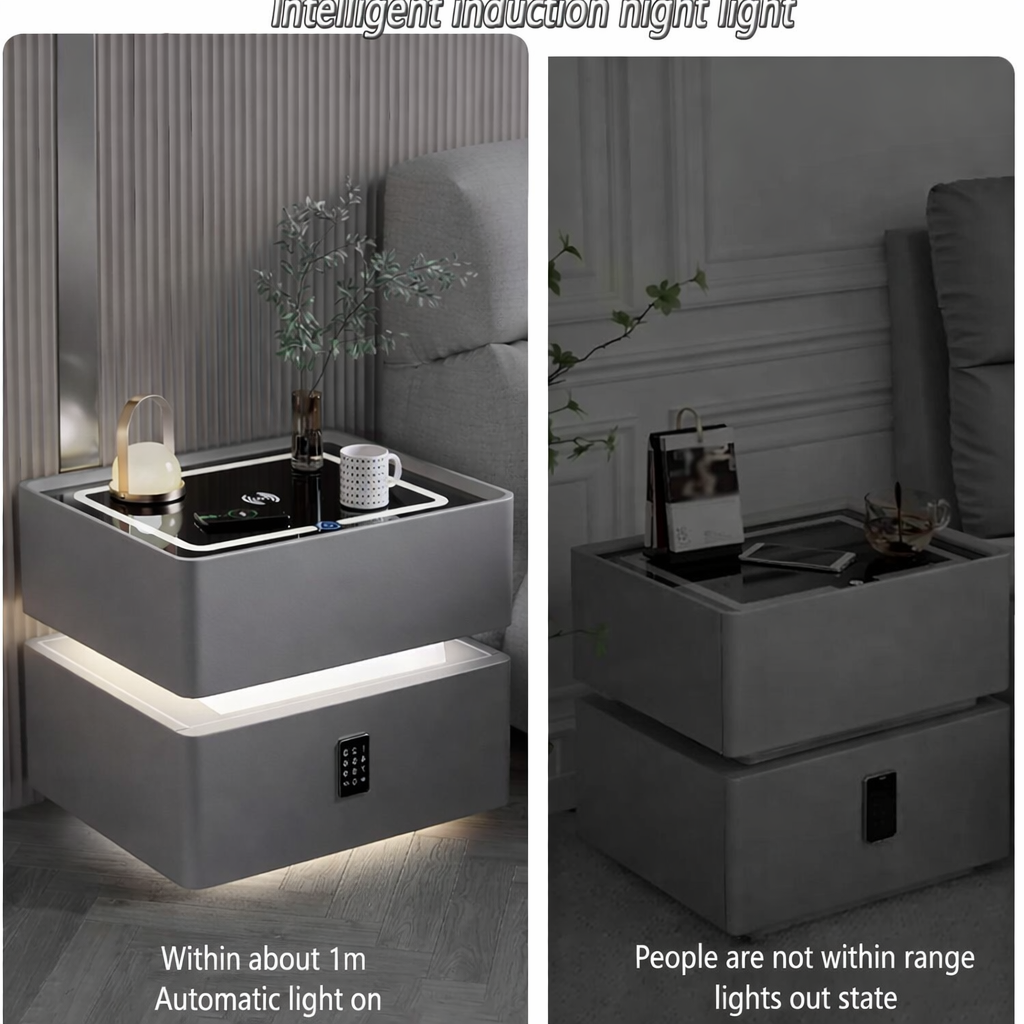 Сучасна тумба XF01 з екошкіри з сейфом, LED-підсвічуванням та Bluetooth Сіра