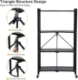 Відстань між полицями дозволяє зберігати на стелажі як дрібні аксесуари (банки, контейнери, книги та ін.), так і невелику техніку (наприклад, мікрохвильову піч або комбайн), а огорожі з двох сторін, запобігають падінню предметів, що зберігаються на полиці.