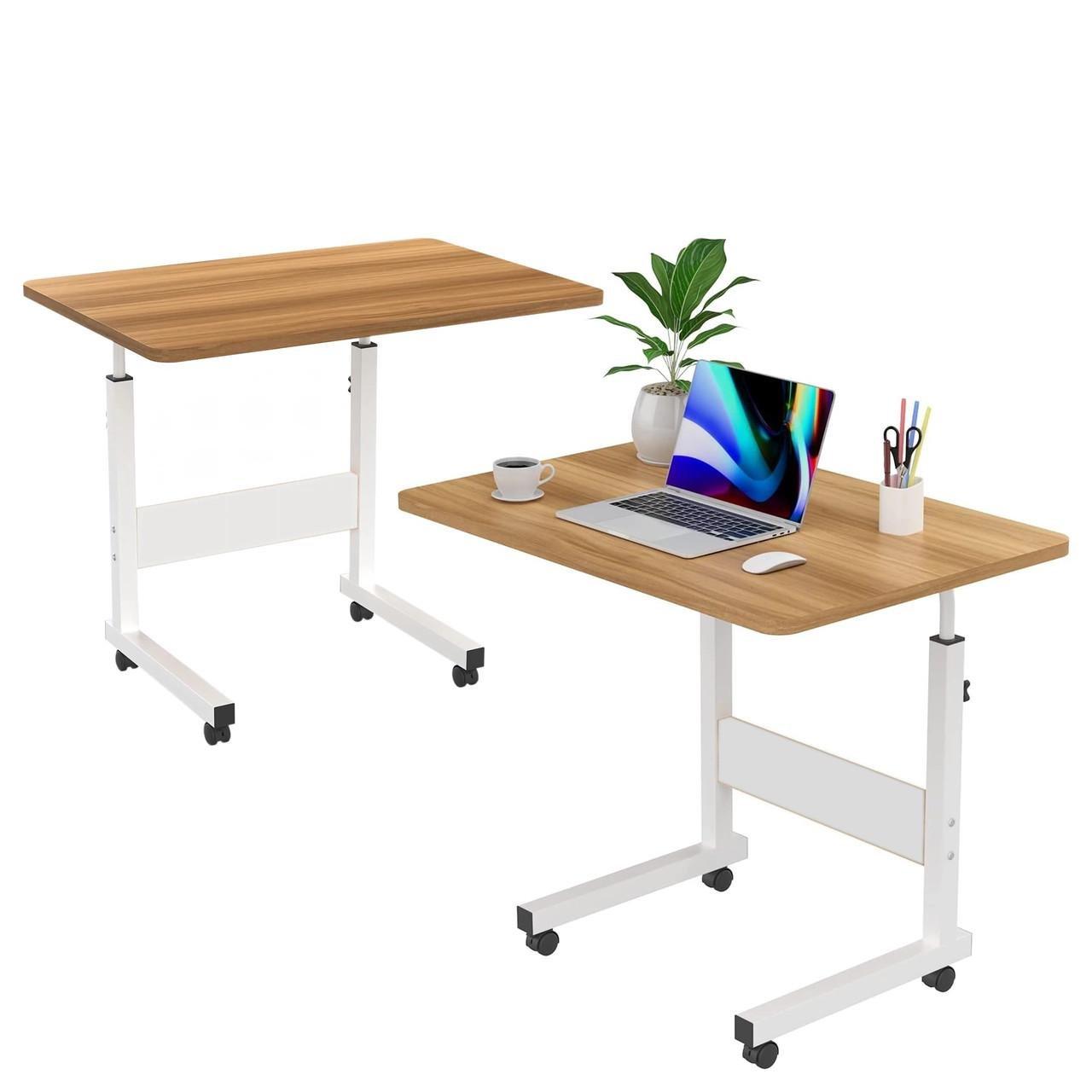 Стіл для ноутбука на колесах з регулюванням висоти 60х40 см, Приліжковий комп'ютерний стіл Світле дерево