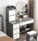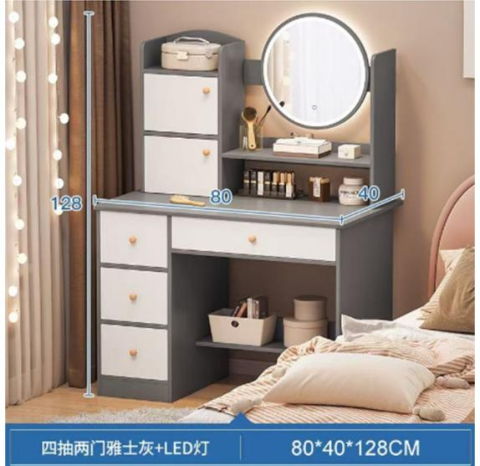 Цей стильний та функціональний стіл із LED дзеркалом – ідеальний вибір для вашого куточка краси. Завдяки елегантному сіро-білому кольору та вбудованому освітленню, він не тільки створить комфортні умови для макіяжу, але стане яскравим акцентом в інтер'єрі. Компактні розміри (глибина – 40 см, ширина – 80 см, висота – 127 см) дозволяють розмістити стіл навіть у невеликих кімнатах, а зручні полиці та ящики забезпечать достатньо місця для зберігання косметики та аксесуарів.