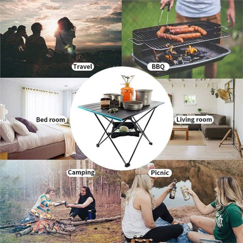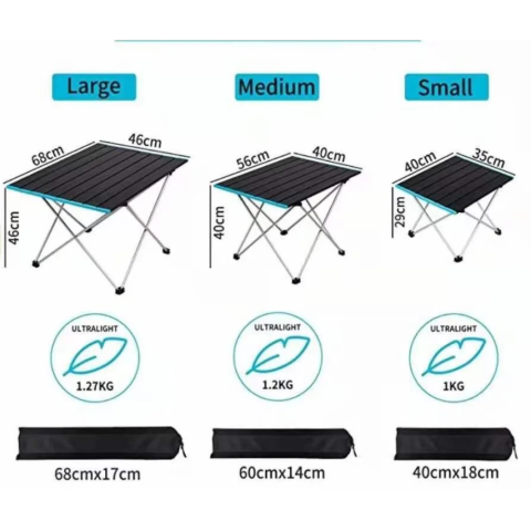 Стіл складного типу для впровадження у туризмі та активному відпочинку. Легкий та зручний, у складі – міцний алюміній. Простий у складанні, а також його зручно зберігати. На такому столику буде зручно обідати за умов перебування серед дикої природи. Розмір моделі – 68*46*46.
