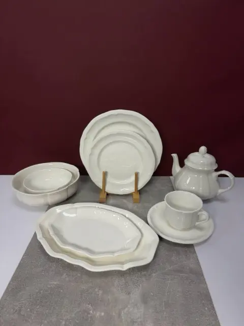 Столовий сервіз DY10 — білий сервіз із класичними формами виглядає стримано та водночас вишукано. Чистий фарфор без декору акцентує увагу на якості матеріалу й акуратних деталях, надаючи сервіровці відчуття порядку та гармонії. Такий сервіз стане ідеальною основою для будь-якого столу.