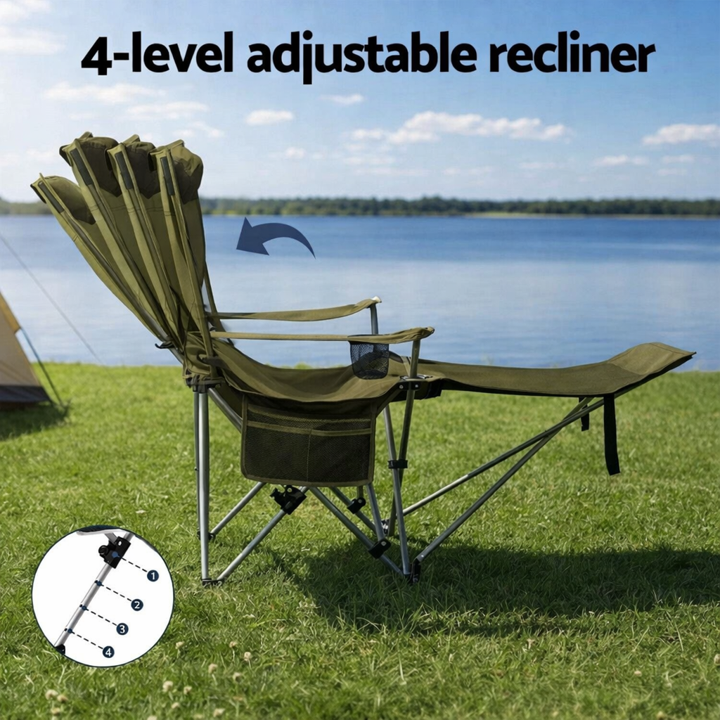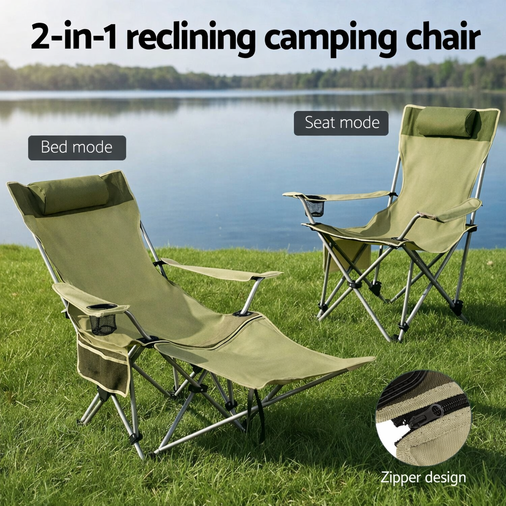 Крісло-шезлонг розкладне 2 в 1 для пікніка, риболовлі Зелене