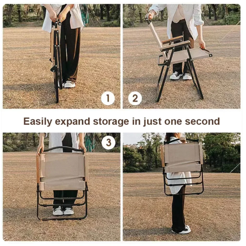 Якісний матеріал та міцна конструкція. Сидіння стільця виготовлене з міцної, приємної, водостійкої тканини Оксфорд, що легко чиститься. Каркас випорожнення виготовлений з алюмінієвого сплаву, легкого, але міцного. Дерев'яні підлокітники. Якісні матеріали та міцна конструкція забезпечують довгий термін служби крісла.