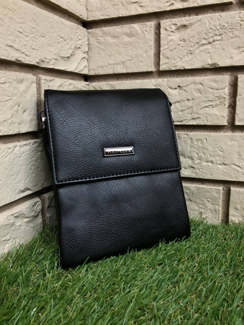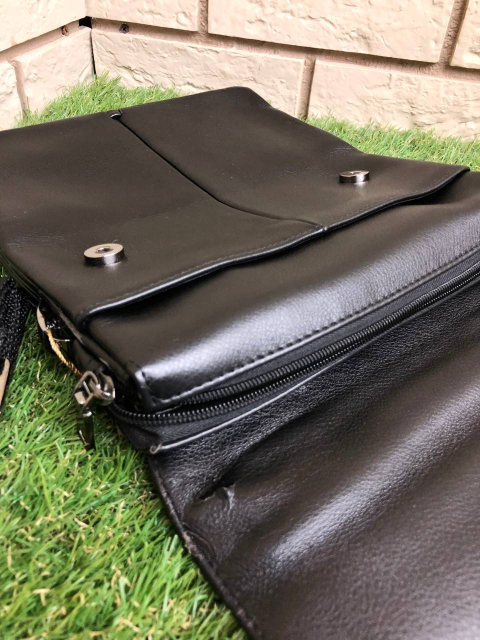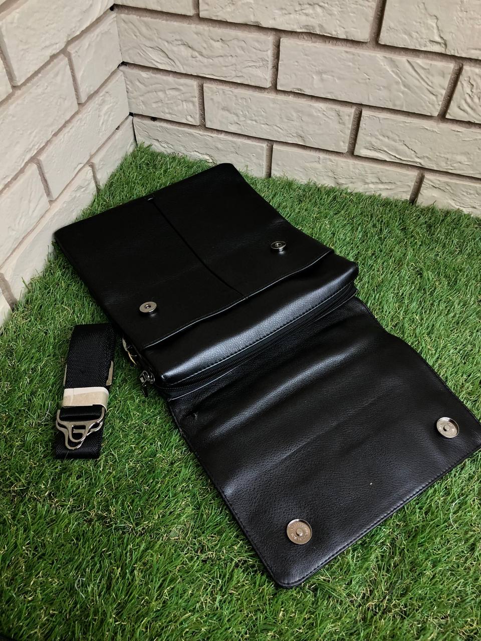 Стильна шкіряна сумка - планшетка через плече в чорному кольорі.
