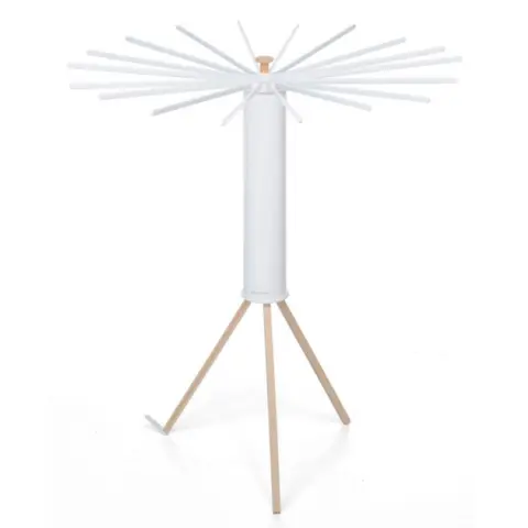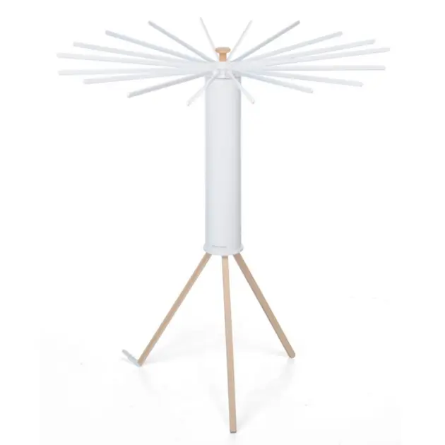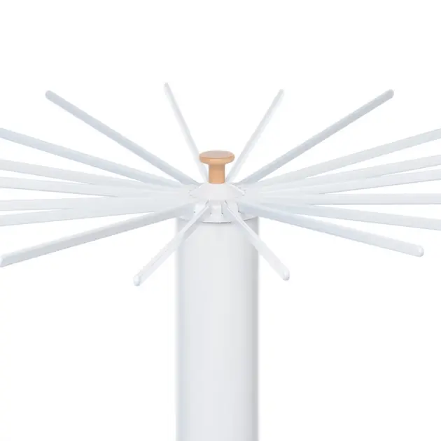 Матеріали сушарки для білизни "Foppapedretti - Octopus": Стійки та висувні стрижні для розвішування білизни виконані з дерева бук, "тубус" - виконаний із пластику білого кольору.