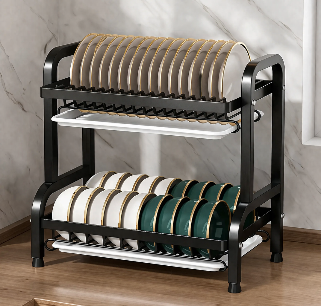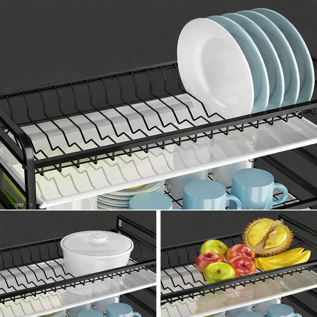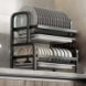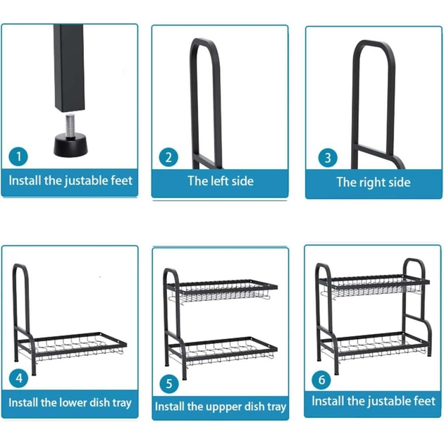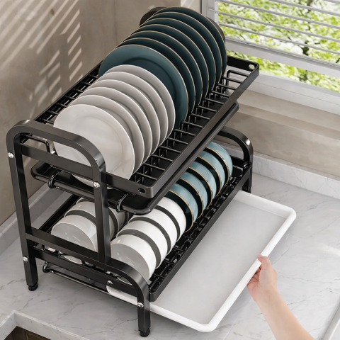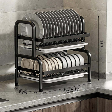 Сушарка для посуду з піддоном / Органайзер на кухню для миття посуду метал R2F-43см Чорний