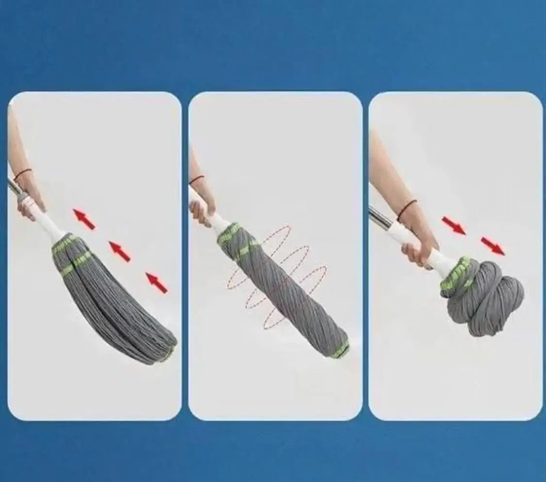 Спеціальний механізм віджиму на швабрі дозволяє тримати руки сухими і чистими під час збирання.