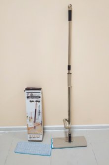 - У конструкції передбачена спеціальна насадка з вертикальним віджиманням, яка прибирає зайву воду з мікрофібри та видаляє сміття, у тому числі добре справляється з волоссям. На ручці є механізм (важіль), який приводить у рух віджимання. Платформа повертається і проходить через блок, що віджимає. Потім повертається у вихідне положення. Прес має додаткову вставку для кращого віджиму та відрізняється міцною конструкцією.