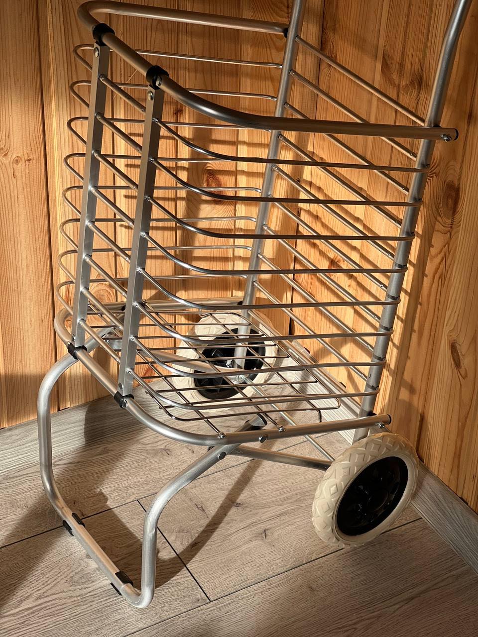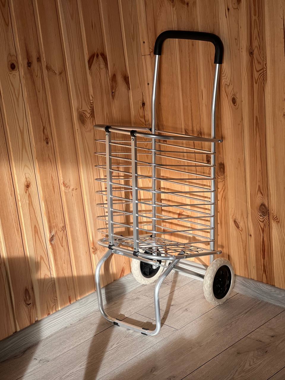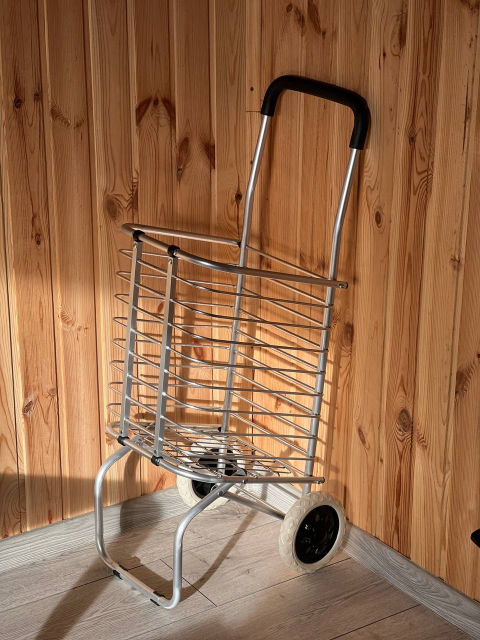 Візки покупців металеві на колесах. Допомагають покупцям комфортно здійснювати покупки, вміщають багато товарів.