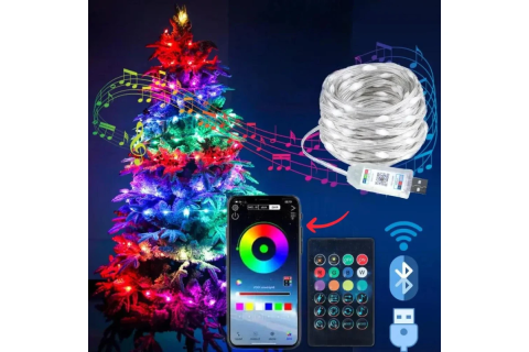 Світлодіодна розумна гірлянда Smart LED 20м IP65 з Bluetooth для ялинки від USB 20м