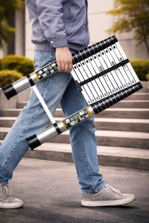 Продумана система телескопічного складання дозволяє швидко розкладати сходи до необхідної висоти і так само легко складати її після використання. Широкі сходи з протиковзким покриттям та стійкими опорними ніжками забезпечують безпеку та комфорт при підйомі та роботі.