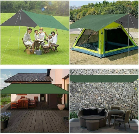 Водонепроникний тент від намету можна використовувати як багатоцільове укриття для задоволення потреб під час активного відпочинку на природі. Ви можете розстелити його на підлозі як килимок для пікніка або використовувати вітрозахисну мотузку та кілочки для гнучкої установки укриття, навісу, дощового тенту або гамака, що ідеально підходить для кемпінгу, походів, піших прогулянок, риболовлі, пікніків, садівництва, пляжного відпочинку і т.д.