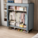 Тканинна шафа для зберігання речей зі сталевим каркасом / Шафа-органайзер для одягу та взуття 145х45х165см Сірий