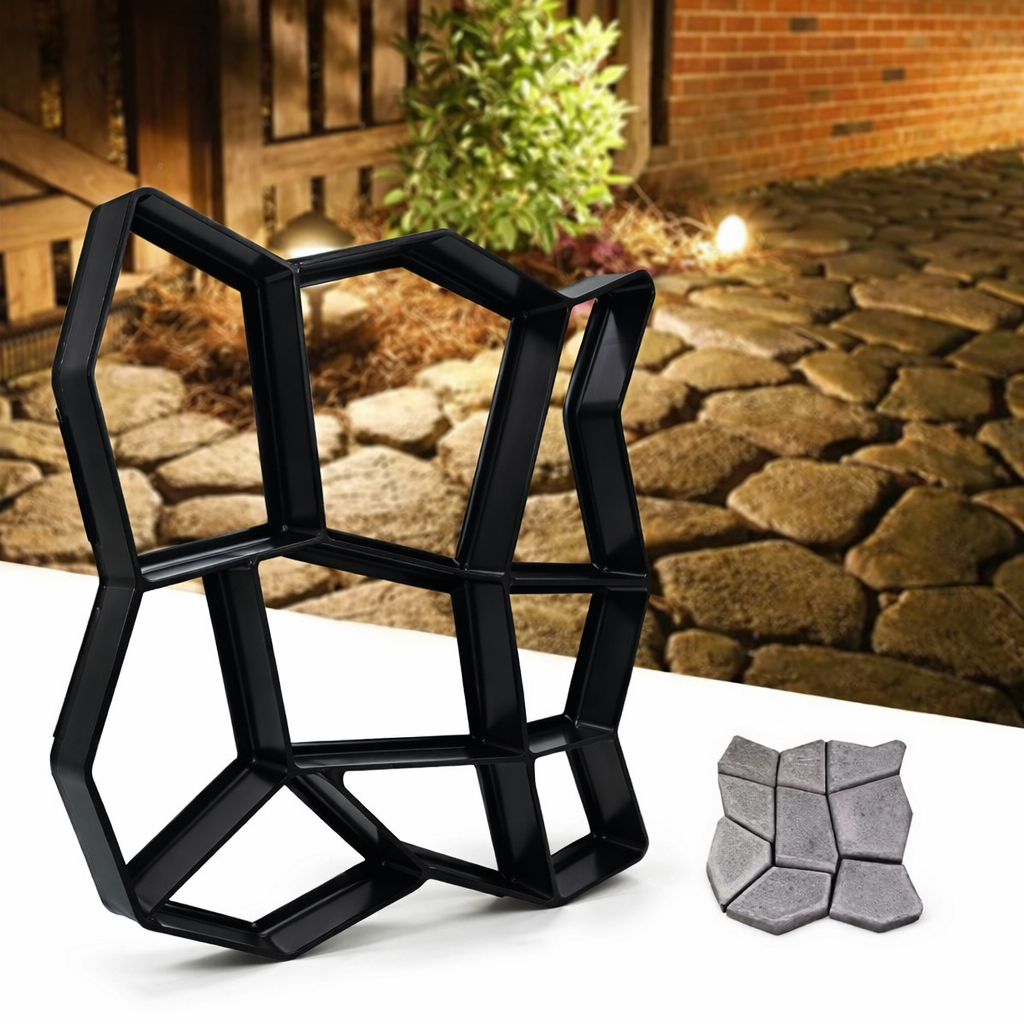 Зручний та практичний трафарет для створення декоративної тротуарної плитки своїми руками. Ідеально підходить для облаштування садових доріжок, двору, дачі або території біля будинку без зайвих витрат.