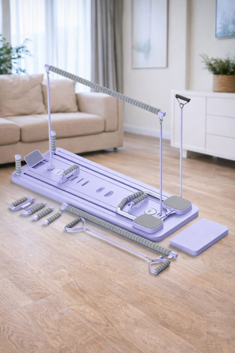 Складний тренажер для пілатес Reformer забезпечує повноцінне тренування всього тіла, покращуючи силу, гнучкість та поставу прямо у вас вдома. Його компактна ергономічна конструкція ідеально підходить для невеликих приміщень, забезпечуючи результати студійної якості без громіздкого спортивного обладнання.