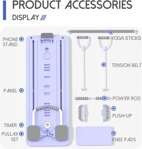 Тренажер для пілатесу Реформер MM3000 Для преса/ніг/присідання, з резинками Фіолетовий
