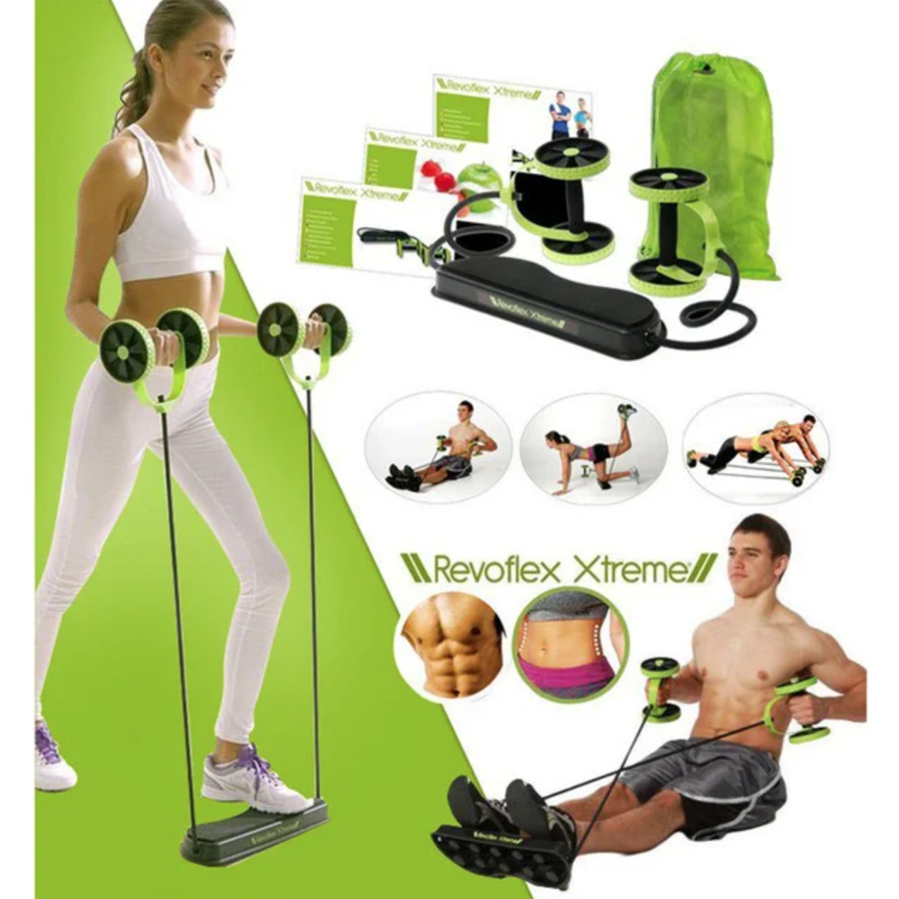 Універсальний тренажер Revoflex Xtreme завдяки своїй конструкції дозволяє тренувати майже всі групи м'язів - з ним Ви зможете зміцнити спину, в рати живіт, накачати прес, а також ефективно тренувати м'язи ніг, рук і навіть сідничні м'язи.