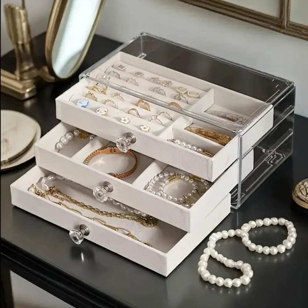 Триярусний акриловий органайзер для ювелірних виробів / Скринька для зберігання ювелірних прикрас