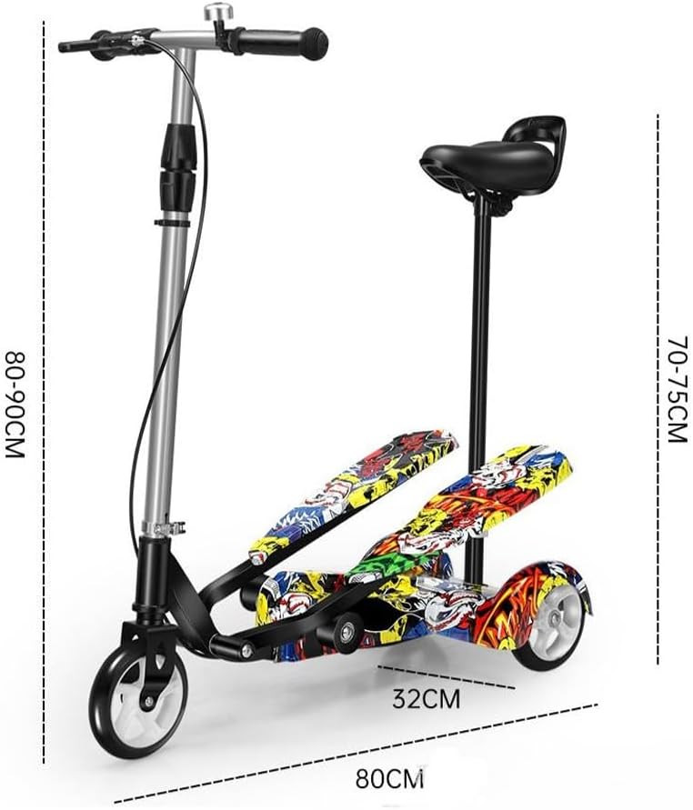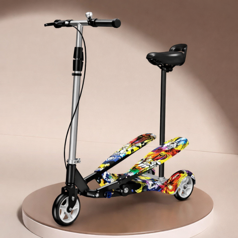 Триколісний самокат-твістер з сидінням / Триколісний дитячий самокат з подвійними ножними платформами та регулюванням висоти Джокер