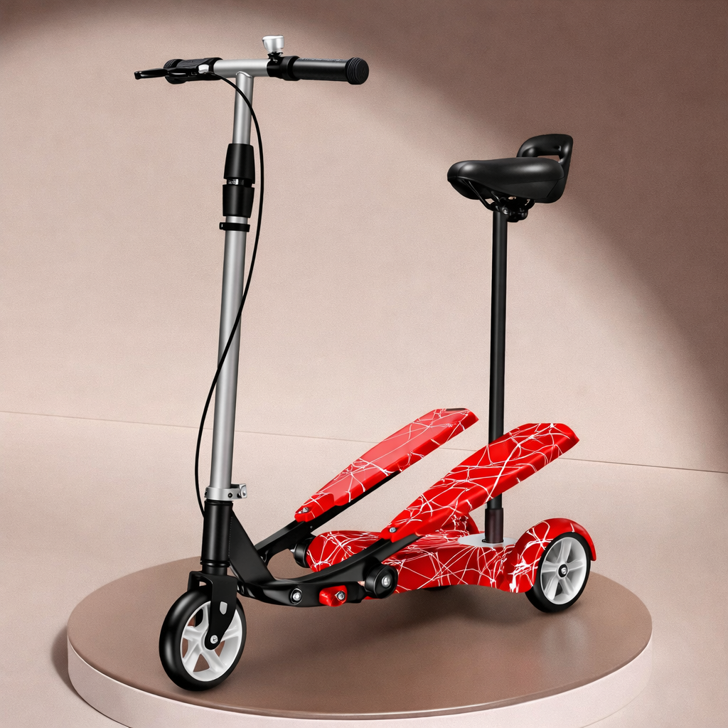 Триколісний самокат-твістер з сидінням / Триколісний дитячий самокат з подвійними ножними платформами та регулюванням висоти Павук